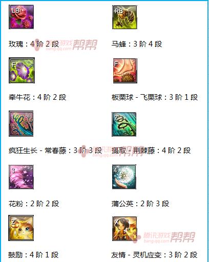 3、花粉4阶2段增加5次毒效果提高伤害,摄取4阶1段在给怪造成伤害的同时吸取生命,此技能怪物越多生命恢复越快越多,如果群怪的个数不是太多的话,建议改为荆棘藤4阶2段提高伤害。