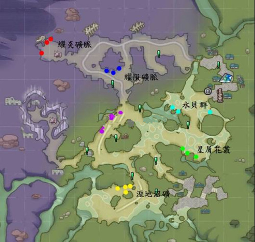《幻想神域》矿物和料理是我们在游戏中必备的游戏素材道具,这里小编就为大家整理在游戏中各个地图地区的矿物以及料理分布图,并在图上进行注明,有需要了解的玩家们可以参考。