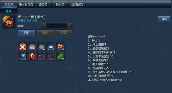 2.第二种获取方法是在即将到来的情人节活动中,通过游戏商城售卖的“爱一生一世礼包” 中获取,礼包价格21314点券,里面包含3个耀眼的水月水银。