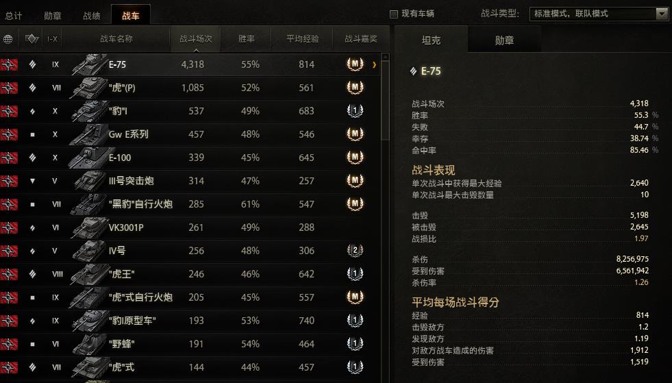 E75不愧于德系的良心,大家都知道它硬,但并不是每个人都能玩好的,看盒子的胜率显示这车均胜率只有49%,这车实际上是打好易,上手难,所以在此略作拙文,和大家交流