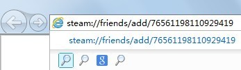 你在启动Steam或者国服dota2登录器后,只需复制这串链接在IE或者搜狗浏览器打开(实测360和谷歌浏览器不支持),就可以快速完成好友添加。当你生成了自己的好友添加快速链接,就能让朋友、饰品交易者快速准确的和你互加好友(目前次代码能在国服登录器上使用,但是无法在国服登录器提取)。