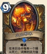 对战第一派,就是火山邪木发挥的时候。起手留激活和低费生物,铺场对打脸,不需要主动解场,等火山邪木到手后交换侍从低费上7-8嘲讽,对面几乎都要崩溃,没有的话,用横扫或者洗脚建立场面优势或手牌优势。
