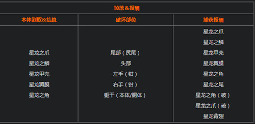 极具神秘色彩,过去仅仅在传说中被记载的龙,近年来由于一位在米拉德村受训的年轻猎人的活跃,才有了确实的遭遇记录,目前尚无种属上的分类。得名于其华美的外观,晶体羽状的鳞片和优雅迅速的行动姿态。具有学士也无法解释的特质,似乎从其体内会释放出某种独特的能量波动,接近其的生物情绪会受到影响,甚至因为细胞活性程度增加而变得气力充盈,体能强化。依靠这种能力,可以操纵一种被称为‘星羽蝶’的大型虫类协助自己猎捕与战斗。通常并不具有特别强的攻击性和威胁性,对于领地没有特别的执念,往往会在感受到威胁后脱离猎场。但是一旦被激怒,随着其外表也所发生的壮美变化,破坏力和速度都会大幅度增强。与星龙的战斗需要做好应对其变动剧烈的攻击节奏的准备。在梅杰波尔坦的猎人社会中,流传着“星龙的出现预兆着重大事件的发生”这样近乎迷信的说法,将它与许多狩猎史上的重大事件联系到一起。但实际星龙到底是怎样的一种生物,是否真的具有传说中的力量,只有真正与之交锋过且生还的猎人才能述说。