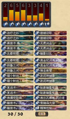 3、术士:优势的对局。我认为这套牧师在对抗动物园和手牌术的时候都是优势对局。动物园不用说了,环牧是它的克星,起手找奥金尼环就行,剑圣复活剑圣环都行,随便一套combo只要用出来动物园就挡不住。手牌术的话比较难打一些,但是在有复活的情况下手牌术经常解不掉我们的场面,只要有剑圣在场上站住,我们就能顺利度过中期,在后期配合双缩小拐卖,很容易拉到术士的大生物。需要注意的是,在对抗手牌术的时候,奥金尼和纳鲁之光往往留到最后用来斩杀。思维窃取如果能偷到大地环的话也可以留下来斩杀用。