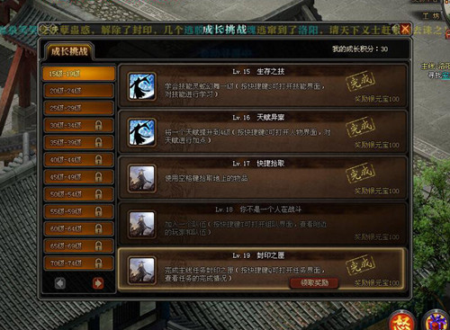 完成成长挑战任务即可领取一定数量的银元宝,共可获得13800银元宝