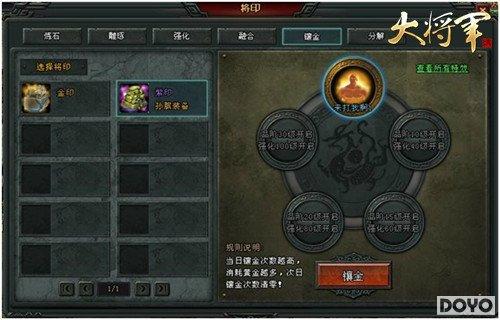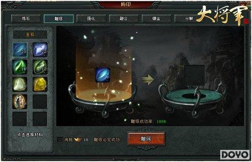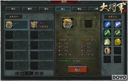 古人说,“玉不琢,不成器”。将军印是由玉石打造的独家装备,自然要经过无数次的打磨锤炼。在镶嵌融合的过程中,玩家将会发现自己的将军印有很多奇特的属性,给作战增添不小的乐趣,期待玩家亲自前来体验一番。
