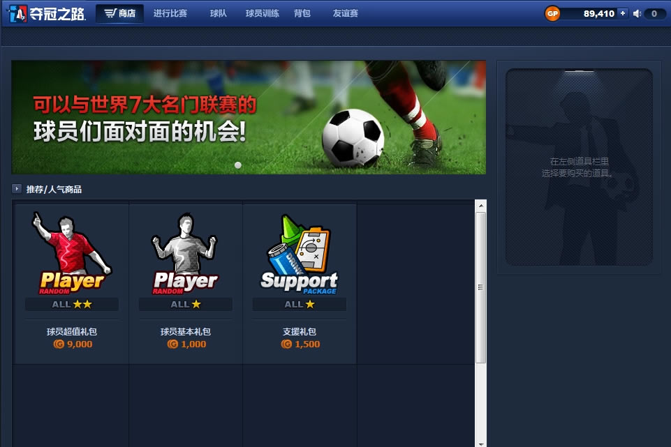 玩家可通过金币在游戏内的商店中购买球员礼包。