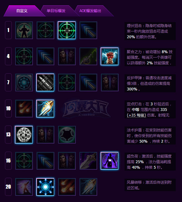 《风暴英雄》诺娃攻略:天赋技能全解一、诺娃优点全程隐身输出能力残局收割二、诺娃缺点无位移技能清线能力差三、诺娃技能分析持久隐形的狙击手(战斗特质):诺娃可以全程隐形,但需要注意的是移动时会有波纹,细心的敌人还是会察觉到诺娃的存在。狙击(Q):非指向性施...2023-08-09 -