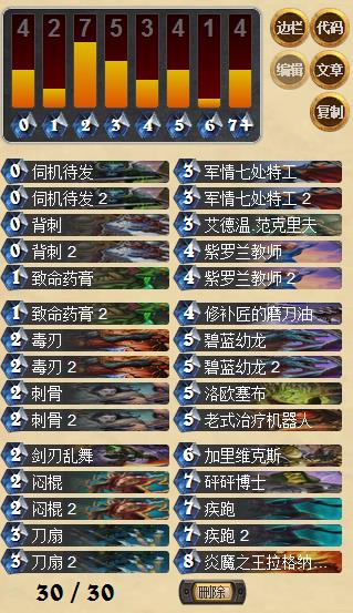 《炉石传说》冷门盗贼卡组疾跑贼 帮你速上传说今天小编给大家带来一个非常有意思也非常有操控性的卡组,大家是否怀念当年风靡天梯的奇迹贼呢?这个卡组与奇迹贼的总体思路是一样的,就是解场,然后通过卡差的优势带走对面。现在就来和大家讲解一下这套卡组吧。★卡组详情: ★详情...2023-08-09 -