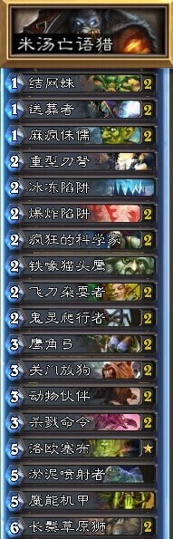 《炉石传说》轻松击败传说前一百名 控制猎卡组攻略我们注意到了一套在天梯当中表现非常出色的控制型猎人卡组。最早是由opeons在国外网站上发布的。目前的情况是,地精大战侏儒的格局还没有完全稳定下来,但是速攻型的猎人凭借其消耗低,节奏快的特性在游戏当中猖獗的蔓延——不过...2023-08-07 -