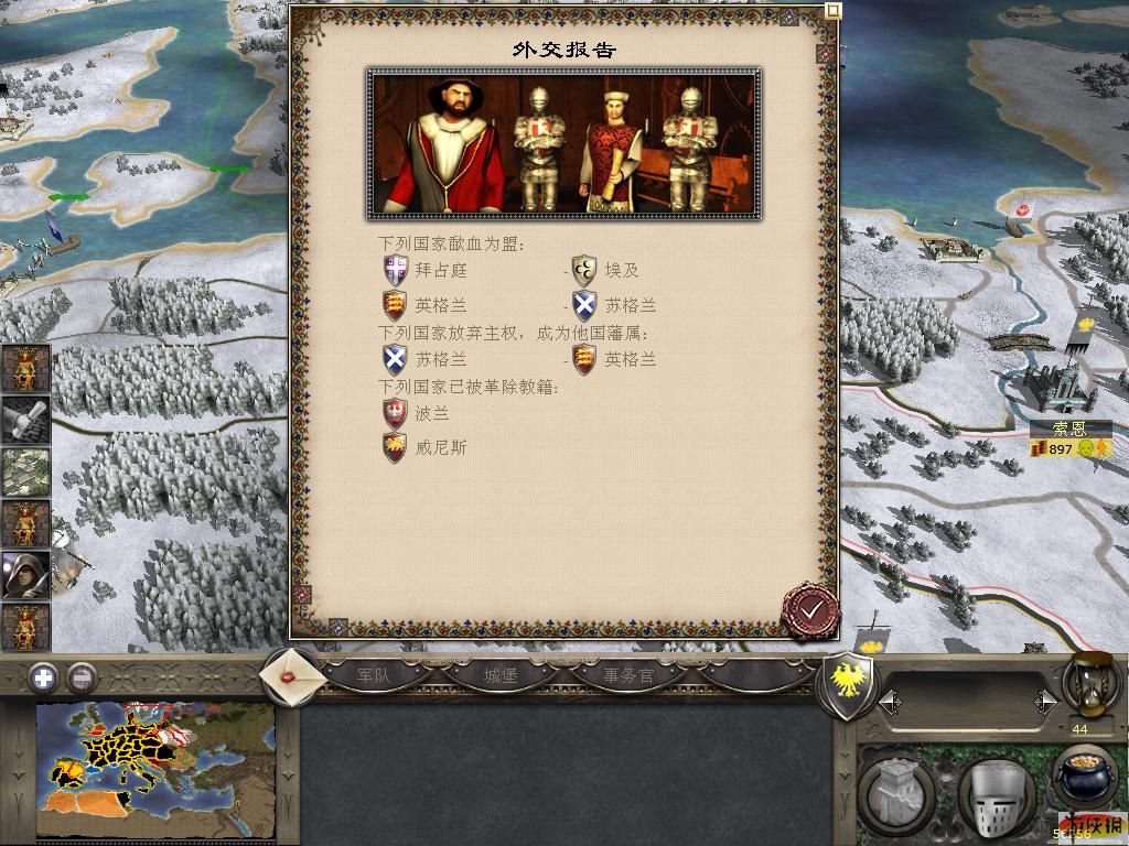 帝国全面战争 一个一回合即可革除任何基督教国家教籍的方法教教想革除别人教籍的新手,一个一回合即可革除任何基督教国家教籍的方法第一步,如果你和教皇关系不好,先派个外交官给他6000元(选择送礼物按钮),把关系加上去第二步,和教皇搞好关系后,随便选个城市发动十字军第三步,选你要...2022-11-21 -