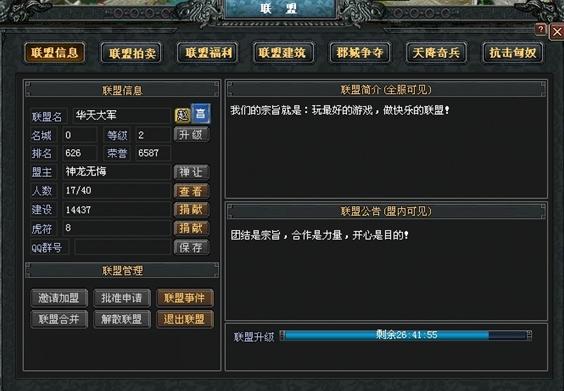 联盟介绍 七雄争霸联盟是游戏中最为重要的社交中心,联盟是集体意识行成的表现。创建一个联盟不仅可以使自己的实力得到快速得提高,获得更多的发展空间、资源、科技加成及盟友帮助等,而且可以和盟内成员畅所欲言、共同做战。有助于玩家的快速发展,同时也可参加更多的活动及...2025-04-12 -