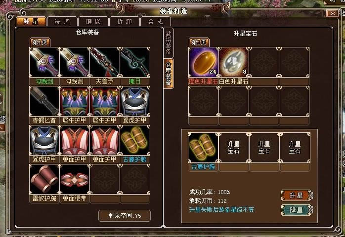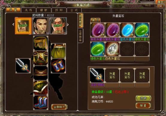 装备升星 墨门春秋获得装备后,所有可以在铁匠铺提升星级。每次星级提升时,武器会增加攻击、披风会增加统帅、其他防具除了增加防御以外还会增加暴击命中等特殊属性。 升级消耗:刀币和升星宝石。装备的星级越高,继续提升星级时的成功几率越低消耗的刀币也越多,而且升级失...2025-04-12 -