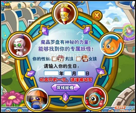 卡布西游魔晶罗盘攻略哈,这是一个愉快的任务,因为只要你填写了自己的出生年月,就可以轻松获得一只专属妖怪了哦^_^来到宠物房,找胖墩博士接受任务。填入你的性别和生日。这是小编获得的专属妖怪“独眼兽”哦!O(∩_∩)O哈哈~完成任务还可以获得奖励,你们的专属妖怪...2025-04-10 -