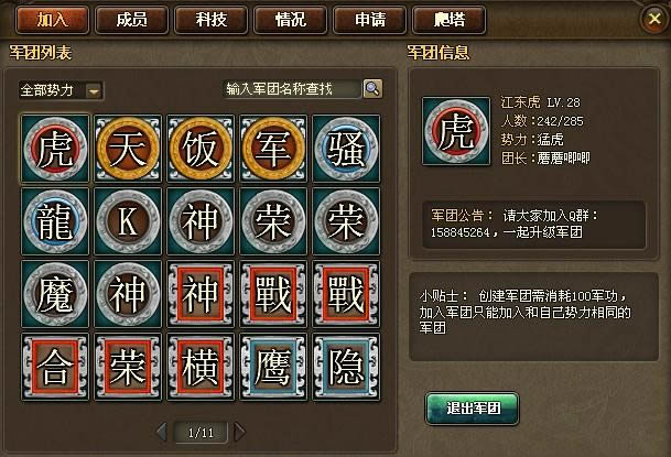 战天下军团详细说明拒绝一个人的战斗,在《战天下》团结起来组成军团可不仅仅是人多力量大而已。加入军团,可以享受多种军团科技的加成,定时参加军团竞技还将获得丰厚的奖励!想成为领袖的你,一定要仔细了解了!【了解军团】创建/加入军团:玩家点击军团,申请加入或创建军...2025-04-09 -