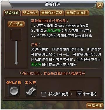 火影世界装备强化将需要进行强化操作的装备放置于装备强化界面的装备栏内,单击开始强化的按钮,如果此时背包内有强化灵珠,则会进行强化操作。强化操作有一定成功率,使用幸运符可以增加强化的成功率,每次最多可以使用9张幸运符。装备强化一次增加一颗星星,实心星星为该...2025-04-08 -