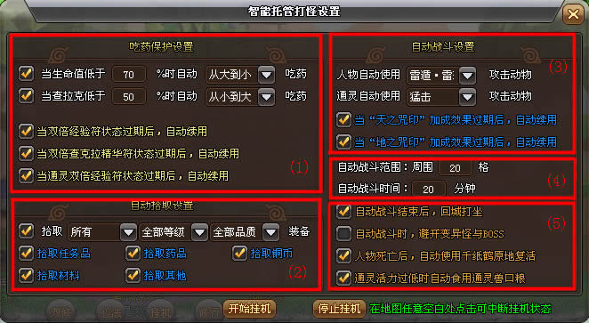 火影世界挂机系统《火影世界》为了方便玩家在游戏中轻松的打怪做任务克敌制胜,为玩家精心准备了强大的挂机系统。1.在游戏界面下方的快捷栏中提供了一个挂机快捷键,点击游戏左上方人物头像下的“挂机设置”按钮,可以打开智能托管打怪设置面板。2.智能托管打怪设置界面...2025-04-08 -