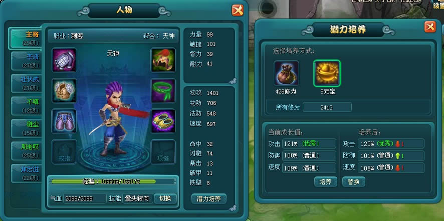 双龙诀潜力培养攻略心得双龙诀之前有属性加点系统的,现在没有了,只有潜力培养。昨天晚上试了一下培养潜力,现在跟大家讲一下心得。如图,这就是潜力培养了,培养消耗的是修为,成功率一般,三分之一的样子,后期的没试过,因为还要留着点技能,不舍得点,哈哈。VIP玩家可以用...2025-04-08 -