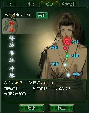 侠客世界修为经脉系统经脉介绍:1、经脉总管人体的气血流动,在侠客世界里面,人共有四脉,分别是任脉,督脉,带脉,冲脉。2、每条奇脉都有五个穴位,但是在突破之前,最多可以点选三个穴位。每个穴位都会增加不同的属性。3、打通经脉需要消耗修为。 经脉转生:穴位最高等级...2025-04-07 -