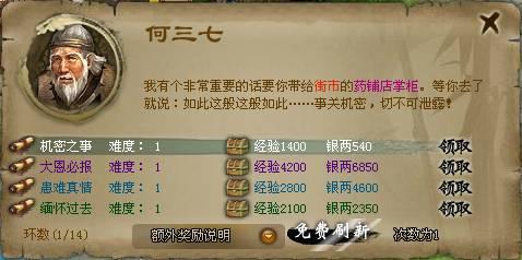 侠客世界环任务介绍环任务介绍在系统发放环任务时,会同时给予多个任务可供领取。同一个任务会有颜色等阶的区别。不同等阶的同一个任务,获得的奖励不同。玩家可以通过消耗元宝的“刷新”操作,重新刷新可领取的任务类型和色阶。环任务领取1 玩家角色达到40级时,与余杭城...2025-04-07 -